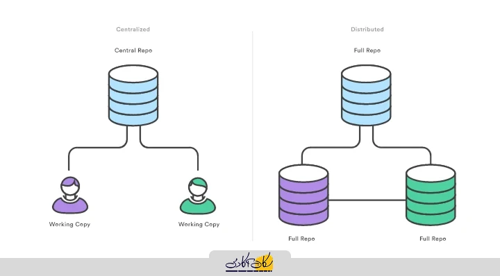درSVN ، هر توسعهدهنده یک کپی کاری (نسخه فعال یا Working Copy) دریافت میکند که به یک مخزن مرکزی واحد برمیگردد. با این حال،Git یک سیستم کنترل نسخه توزیع شده است. به جای کپی کار، هر توسعهدهنده مخزن محلی خود را با یک تاریخچه کامل از Commit ها دریافت میکند.