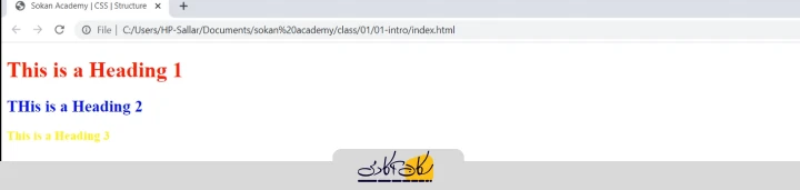 پس از ذخیره و اجرای فایل در مرورگر، متن <h3>