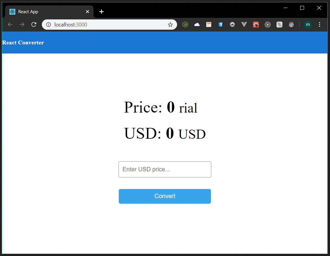 در مثال بالا، سه متغیر به نامهای usdValue، rialValue و usdValueInput تعریف کردیم که دو متغیر اول برای نمایش مقدار ریالی و دلاری کالا و متغیر سوم، برای ذخیره کردن مقدار input به کار رفته. همچنین برای اینکه بعد از تغییر input مقدار isdValueInput هم تغییر کنه (ساخت controlled input) ، از متد setUsdValueInput استفاده کردیم که در زمان استفاده از useState تعریف شده.