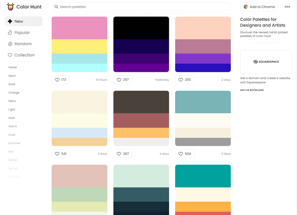 وبسایت ColorHunt یکی از وبسایت های دوست داشتنی و جذابی هست که خیلی از طراح ها می شناسنش و بهش پایبند هستن.