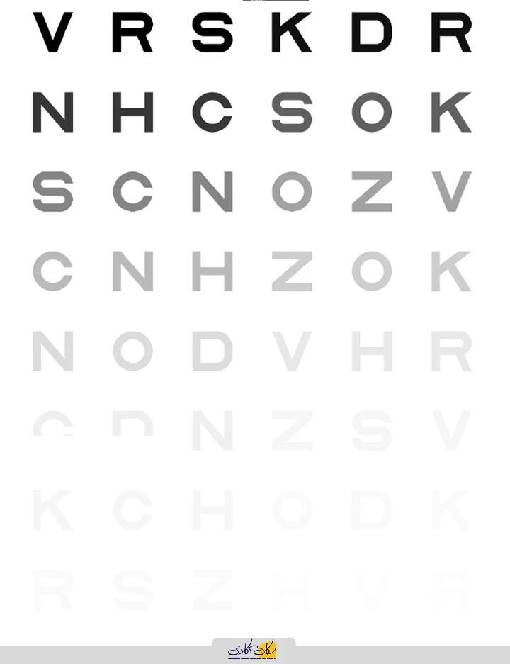 کنتراست "واقعی" نیست، یک درک است. حساسیت کنتراست به توانایی تشخیص تفاوت های ظریف در سایه و الگوها اشاره دارد. درک کنتراست در طول زندگی ما تغییر می کند و می تواند تحت تأثیر مسائل مختلف از جمله سلامتی یا داروها قرار گیرد. حساسیت کنتراست را می توان با استفاده از یک نمودار مانند نمودار حساسیت کنتراست Pelli-Robson که در زیر نشان داده شده است، اندازه گیری کرد. از افراد خواسته می شود حروف روی نمودار را بخوانند. کنتراست در بالای نمودار بیشتر است و با پیشرفت آن کنتراست کمتر می شود. نمره دهی بر اساس توانایی دیدن حروف است.