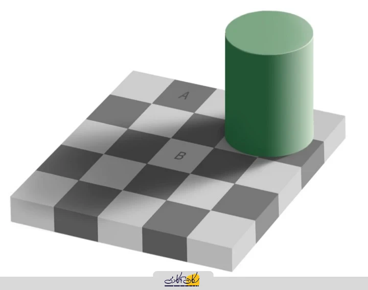یک مثال دیگر در این مورد توهم Checker-Shadow است که در تصویر زیر نشان داده شده است. در این توهم حتی اگر کاشی A و کاشی B یکسان باشند، یکی از آنها روشن تر از دیگری است. این توهمات به دلیل نحوه پردازش اطلاعات ما در مورد کنتراست و سایه ها عمل می کنند.