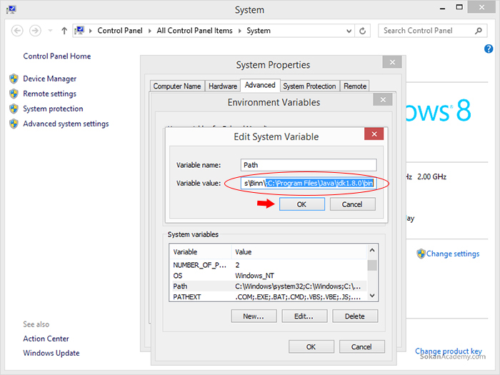به منظور توسعه برنامه های دسکتاپ و همچنین اپلیکیشن های اندرویدی در سیستم عامل ویندوز با استفاده از زبان برنامه نویسی جاوا، نیاز است تا پس از نصب JDK زبان برنامه نویسی جاوا، سیستم عامل ویندوز خود را از این قضیه مطلع سازیم که در غیر این صورت اگر از IDE هایی همچون اکلیپس، نت بینز و ... استفاده نماییم با ارور مواجه خواهیم شد.