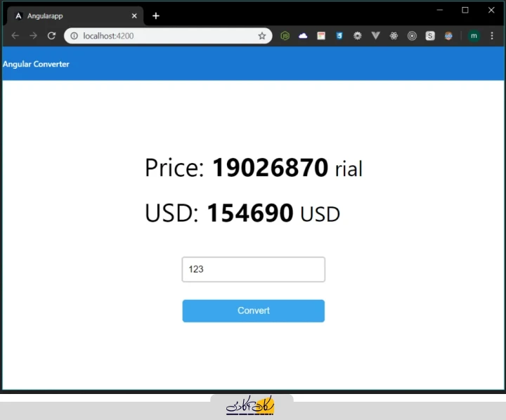 در کد بالا چهار متغیر برای کامپوننت در نظر گرفته شده. appName که نام پروژه ما را در بر میگیرد و در قسمت بالای صفحه در navbar نمایش داده میشود، rialValue و usdValue برای نمایش قیمت ریالی و دلاری کالا در template و usdValueInput که برای دریافت ورودی و قرار دادن مقدار input استفاده شده است.