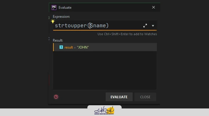 در حین debug کردن کد می توانیم یک تکه کد نیز اجرا کنیم برای این کار alt + F8 را میزنیم و در پنجره ظاهر شده کد مد نظر را اجرا می کنیم: