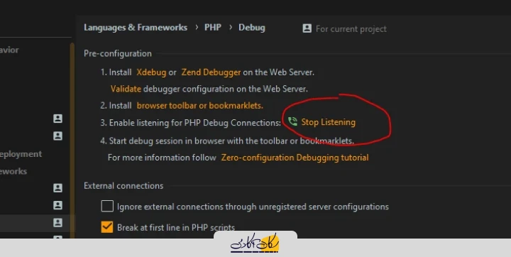 توجه داشته باشین که در قسمت Setting | Languages And Frameworks | PHP | Debug