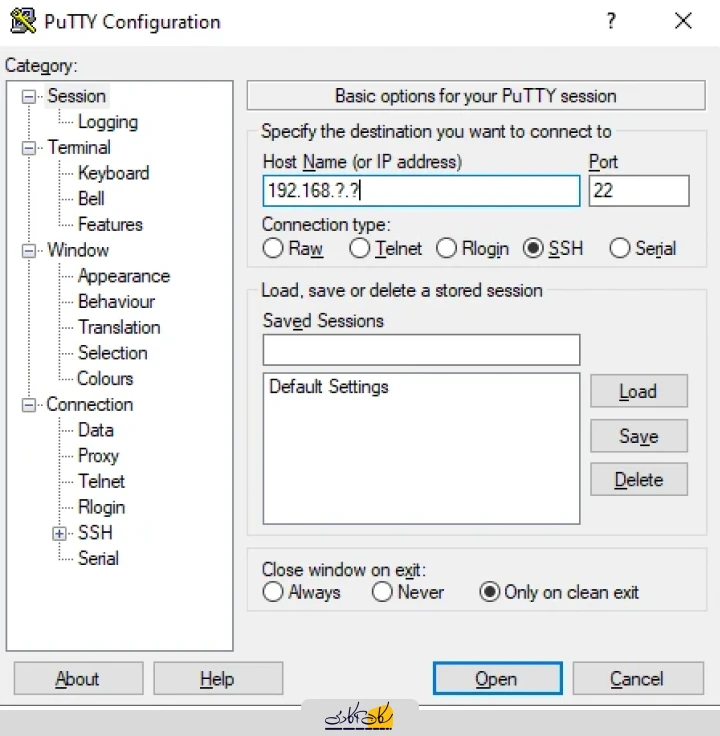 برای اینکه بتوانیم کدهای remote را در local دیباگ کنیم بایستی یک ارتباط tunnel از طریق SSH برقرار کنیم که تمام درخواست هایی که به پورت ۹۰۰۰ remote ارسال می شود به پورت ۹۰۰۰ در Local منتقل شود و ما در Local از نتیجه ی دیباگ با خبر شویم. برای ایجاد این tunnel به کمک نرم افزار ابتدا putty آی پی سرور خود را وارد کنید: