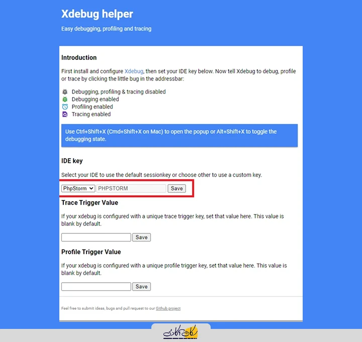 بعد از نصب برای استفاده باید گزینه debug را انتخاب کنید که در نتیجه آیکون آن سبز می شود. اگر IDE که استفاده می کنید PHPStorm است باید در قسمت تنظیمات افزونه آن را مشخص کنید: