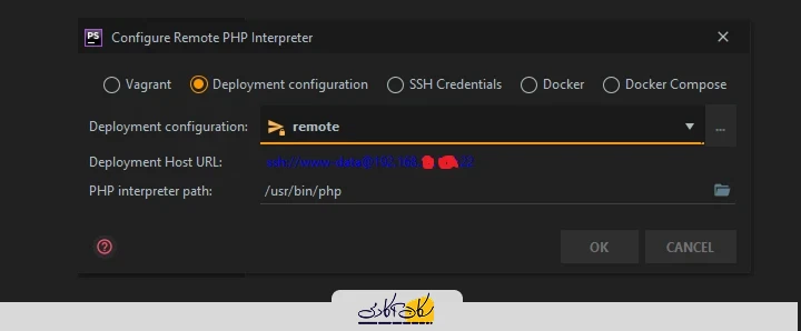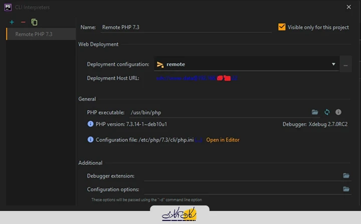 تنظیمات deployment که در مرحله ی قبل ایجاد کردیم را (ما در اینجا با اسم remote ساخته ایم) انتخاب کنید، در قسمت PHP interpreter path باید مسیر فایل اجرایی php در سرورتان را مشخص کنید که به صورت پیش فرض در مسیر usr/bin/php/