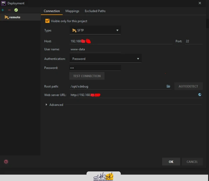 تا این مرحله xdebug بر رروی سرور شما نصب شد حال نیاز است تنظیمات مربوط به IDE خود را انجام دهید .در اینجا ما مراحل نصب را برای PHPStorm انجام می دهیم. بعد از آن برنامه ی خود را پیاده سازی کرده اید و همچنین روی سرور خود استقرار کرده اید اگر مراحل Deployment را از phpstorm انجام نداده اید پس نیاز است در ابتدا در قسمت Deployment یک ارتباط sftp با سرور برقرار کنیم. به همین خاطر به این مسیر بروید Tools | Deployment | Configuration